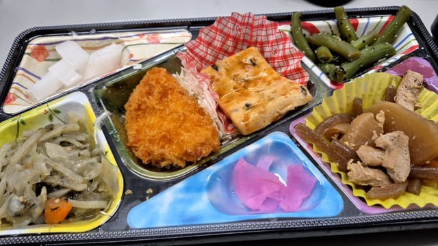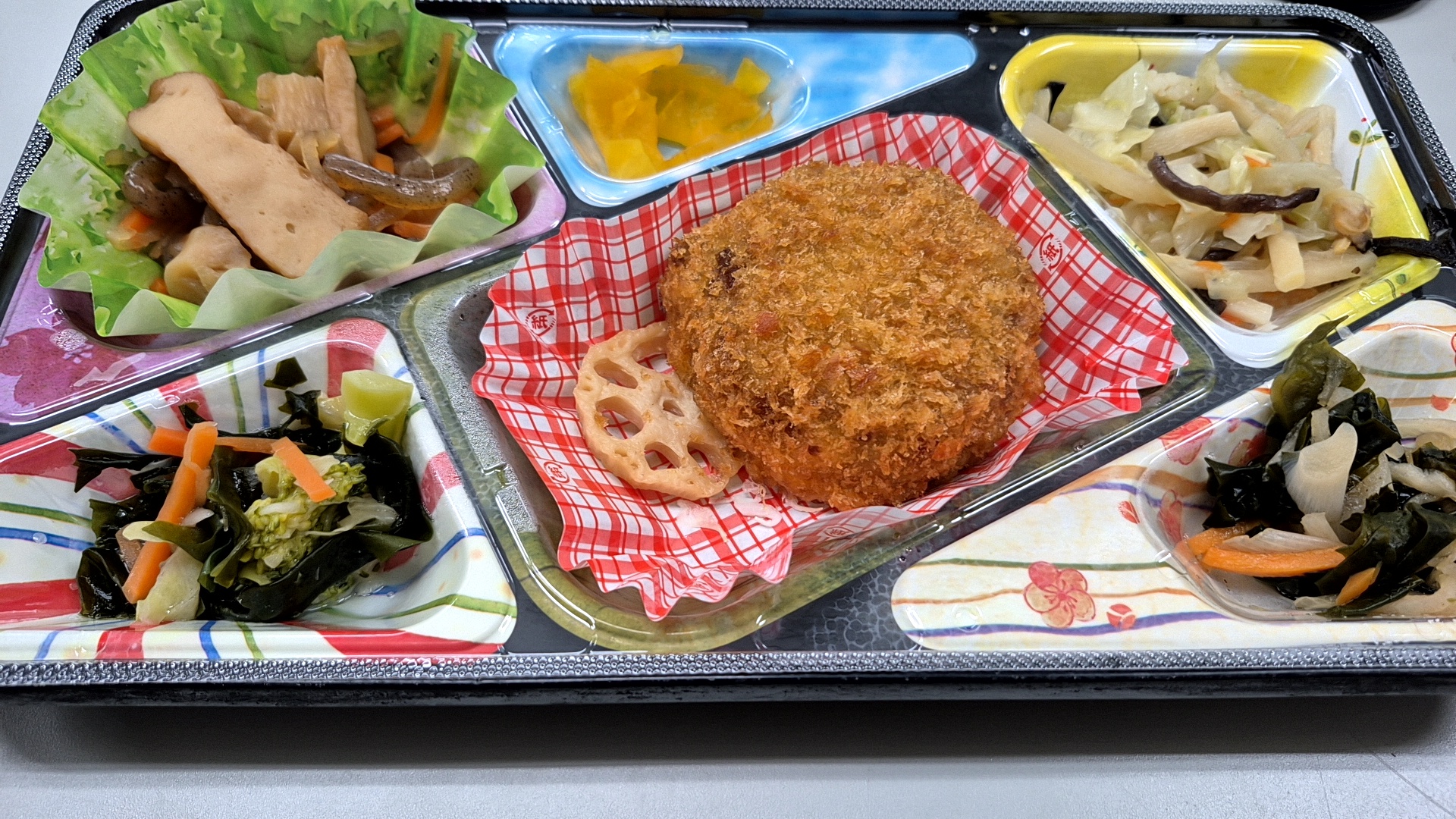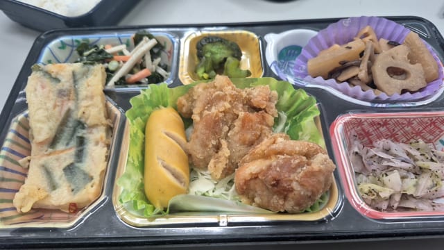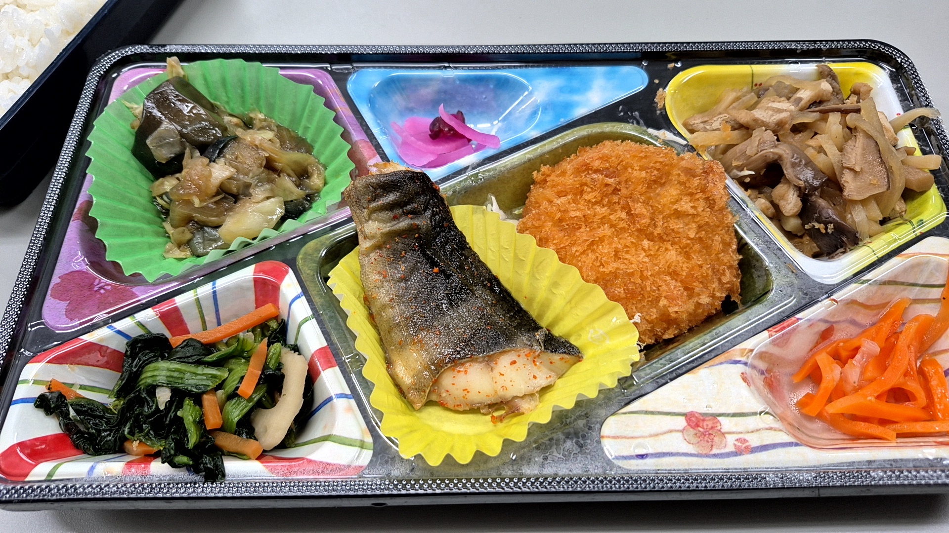 普通の弁当とヘルシー弁当と麺類+おかずと丼物の4種から選択できるし、そこそこ美味いと思う