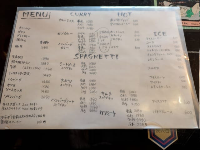 キムチスパゲティはコリアン用なのかな。韓国料理店では見覚えないけど韓国料理?
