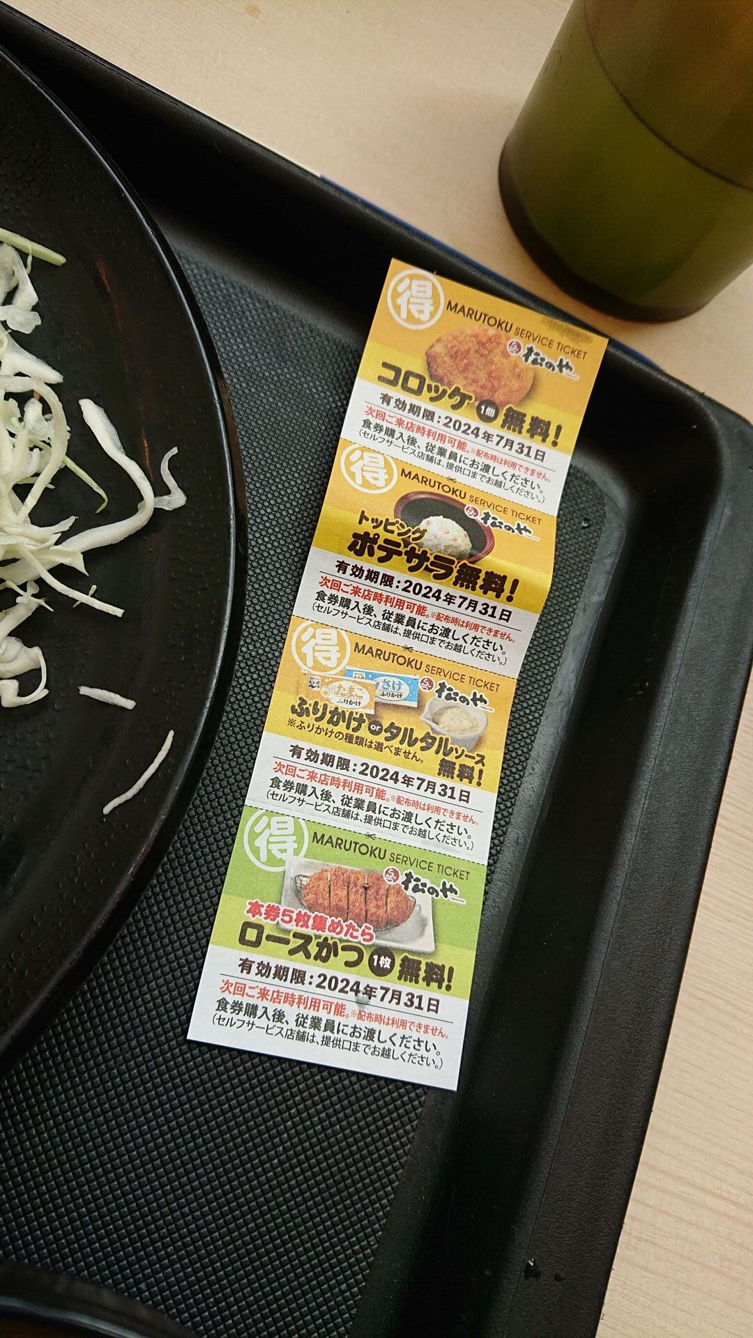 情弱かよ 朝はロースカツ定食550円にいつものサービス券でコロッケ追加一択やろ ちなご飯と味噌汁はおかわり無料の模様
