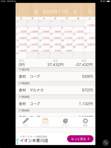 昼は弁当頼んで8400位それ外しても3万近くは使うかな