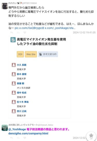 当然リンク先読んでないんやろうけど結論は「チャージする装置が油に対流発生させてそれが酸化抑制になっているのは確認された」「マイナスイオンの効果はない」としか書かれてないぞ