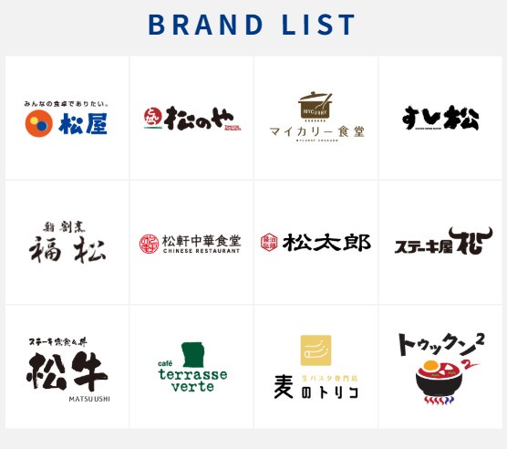 松のや(松屋併設含む):577店舗(2025年11月時点)
