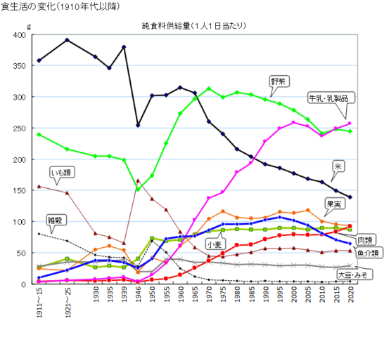 長期的に見ると1970年頃から消費量はそんな変わってない