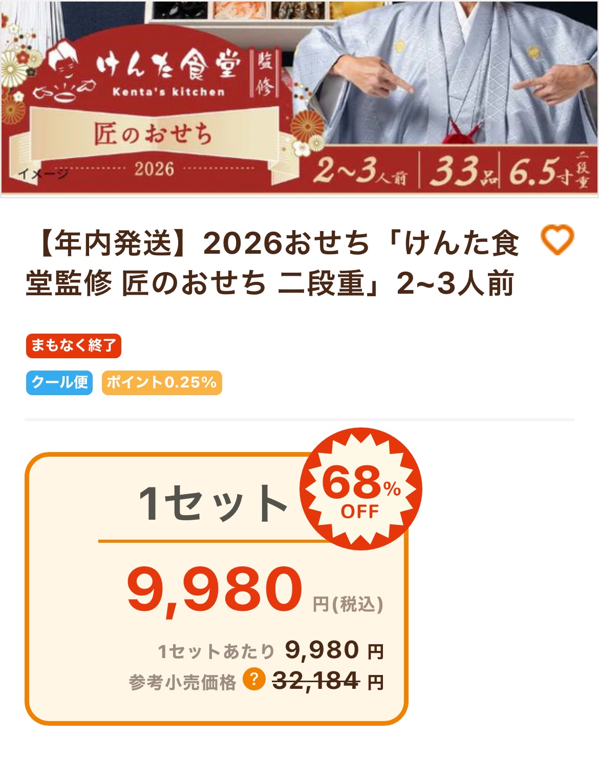 寿司が698円→238円、ローストレッグ438円→328円の秀句化だった