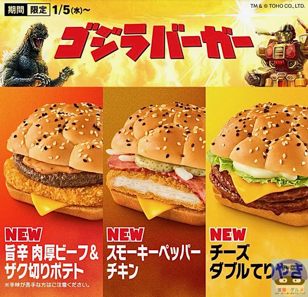 1月 ポテト&肉厚ビーフ、辛いチキン、チーズてりやき