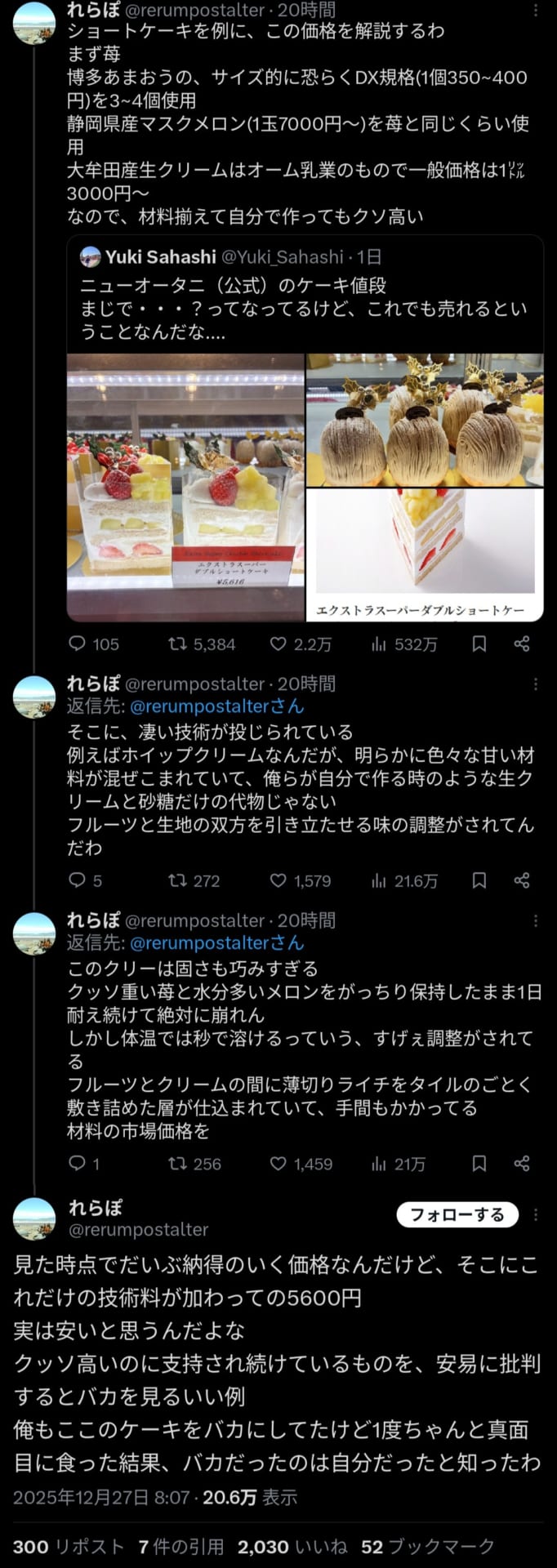 ケーキの値段てある程度まで行くとフルーツの値段なんだな