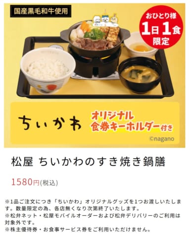 キーホルダー買ったら無料ですき焼き鍋膳食えるやん