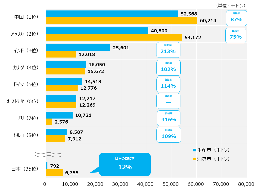 あんな量を輸入してるなら国内自給率が低くなるのも納得だわ