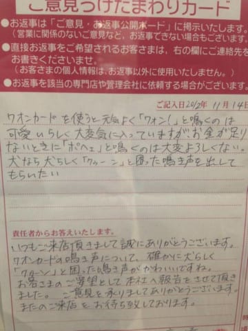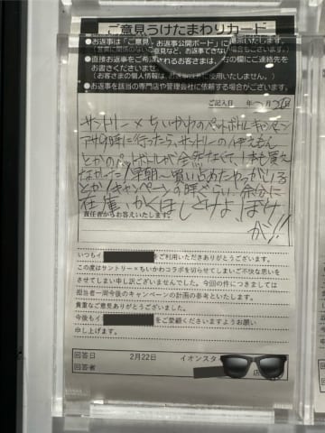紙でご意見受け付けてない店の客はもっとキレてるんか?