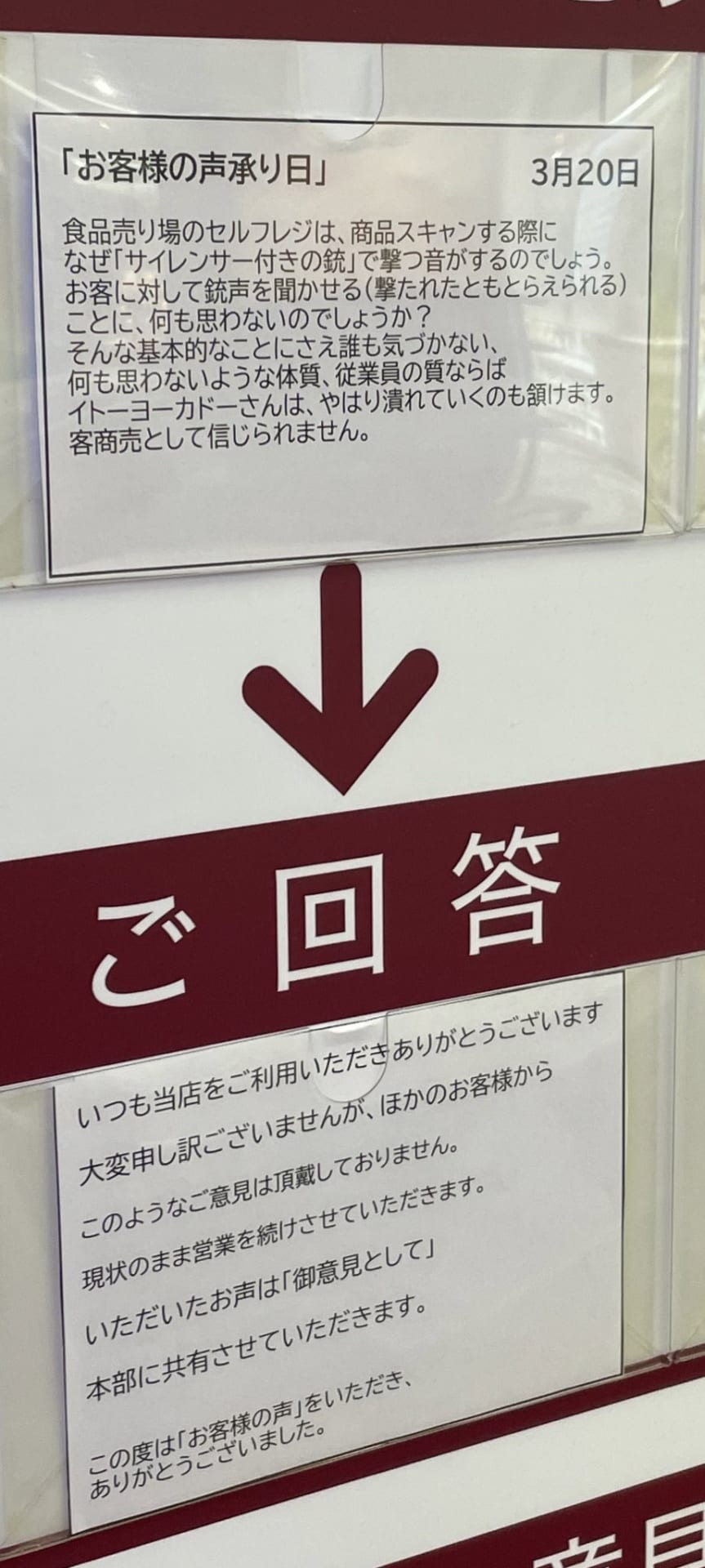 【画像】スーパーのお客様の声、ブチギレ度合いがすごすぎて炎上