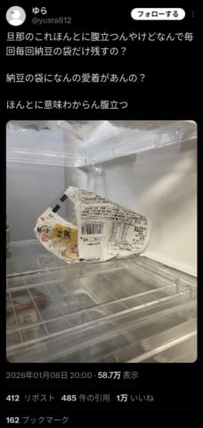 【悲報】男さん、納豆の袋だけを冷蔵庫に残して奥さんバチギレ