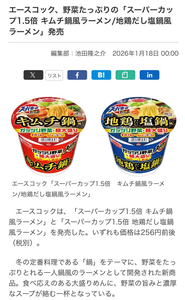 スーパーカップって安くて量も多いけどあんま美味くないからコスパええとは言えへんよな