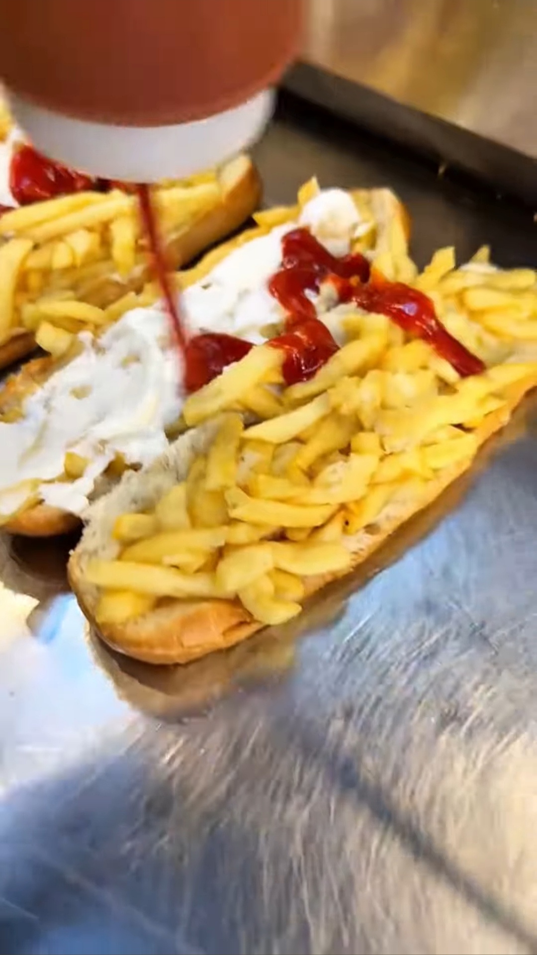パンにポテト、チーズソース?、ケチャップ、コールスローを挟む感じか