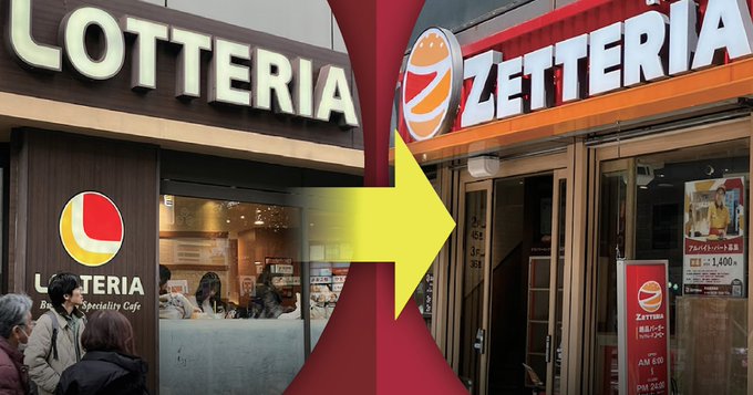 ワイの近所のロッテリア、去年かおとどしくらいにゼッテリアになっててびっくりしたわ