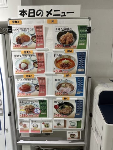 日替わりが250円でハンバーグ定食や唐揚げ定食が380円やったな