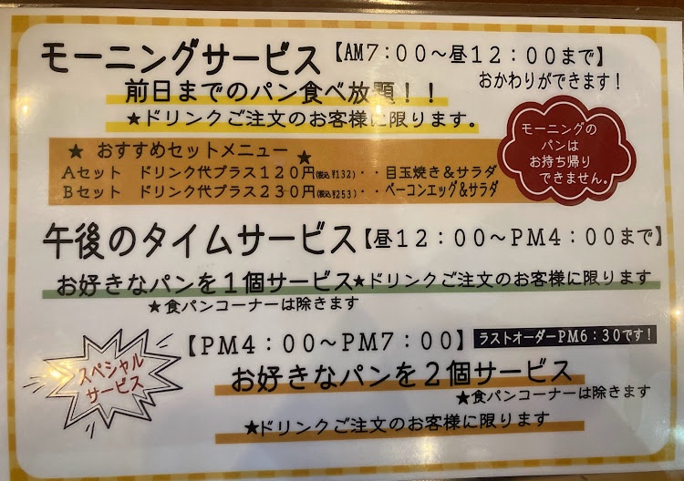 稲沢市には、550円でコーヒーお代わり自由のパンとトーストが無料モーニングとして付いてくる