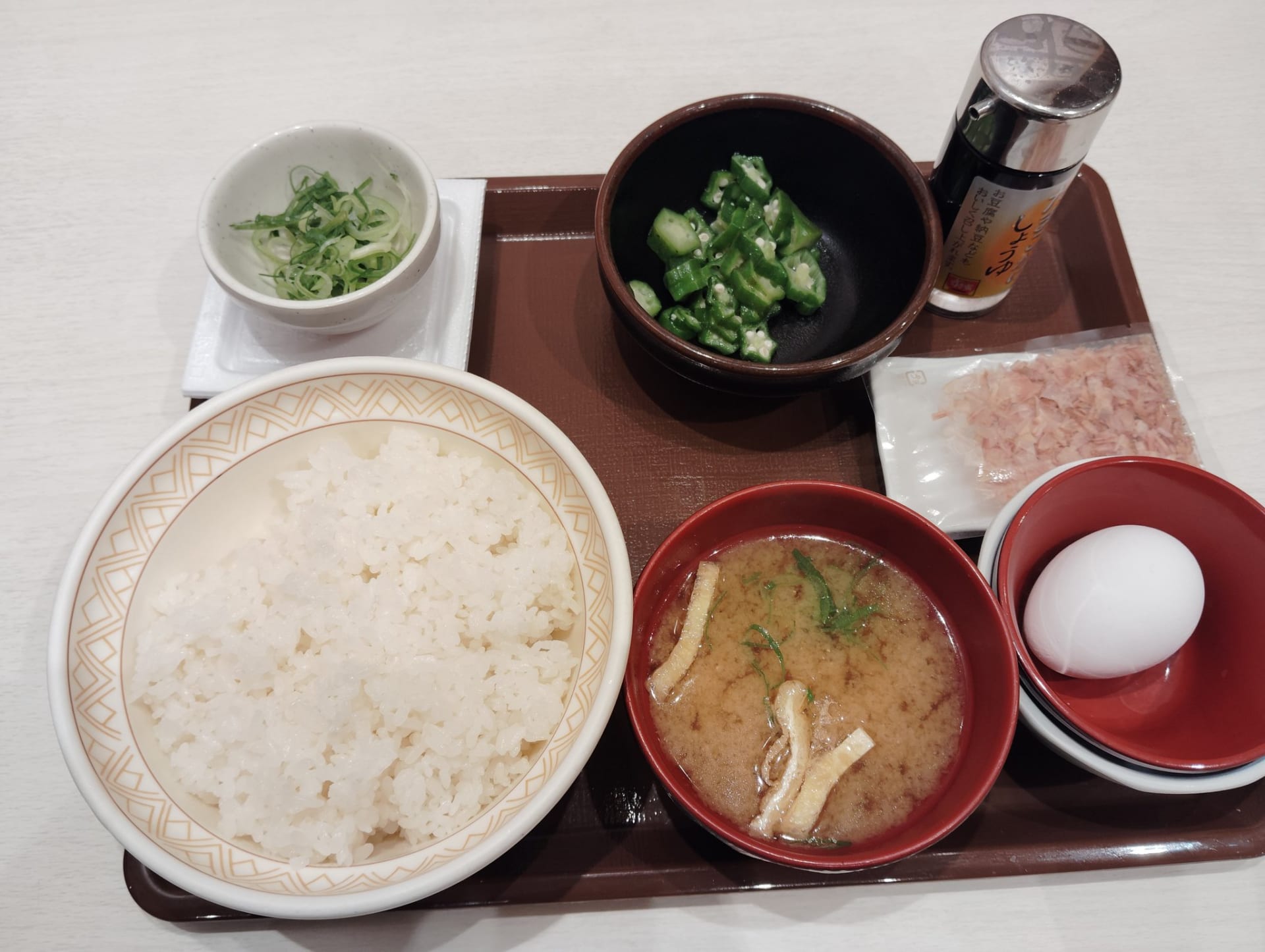 ふつう牛たまかけ朝食牛小鉢肉2倍550円頼むよね
