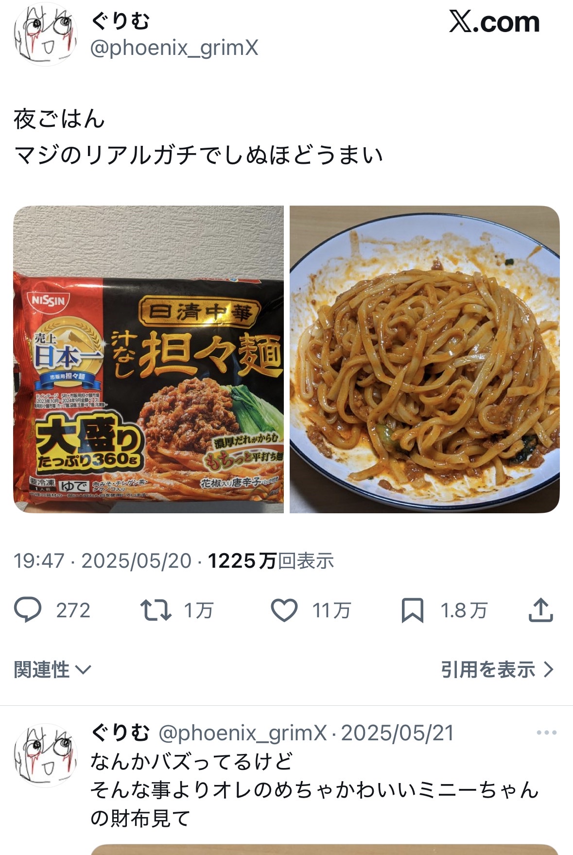 【画像】「冷凍の汁なし担々麺」、ついにバレるwwwww