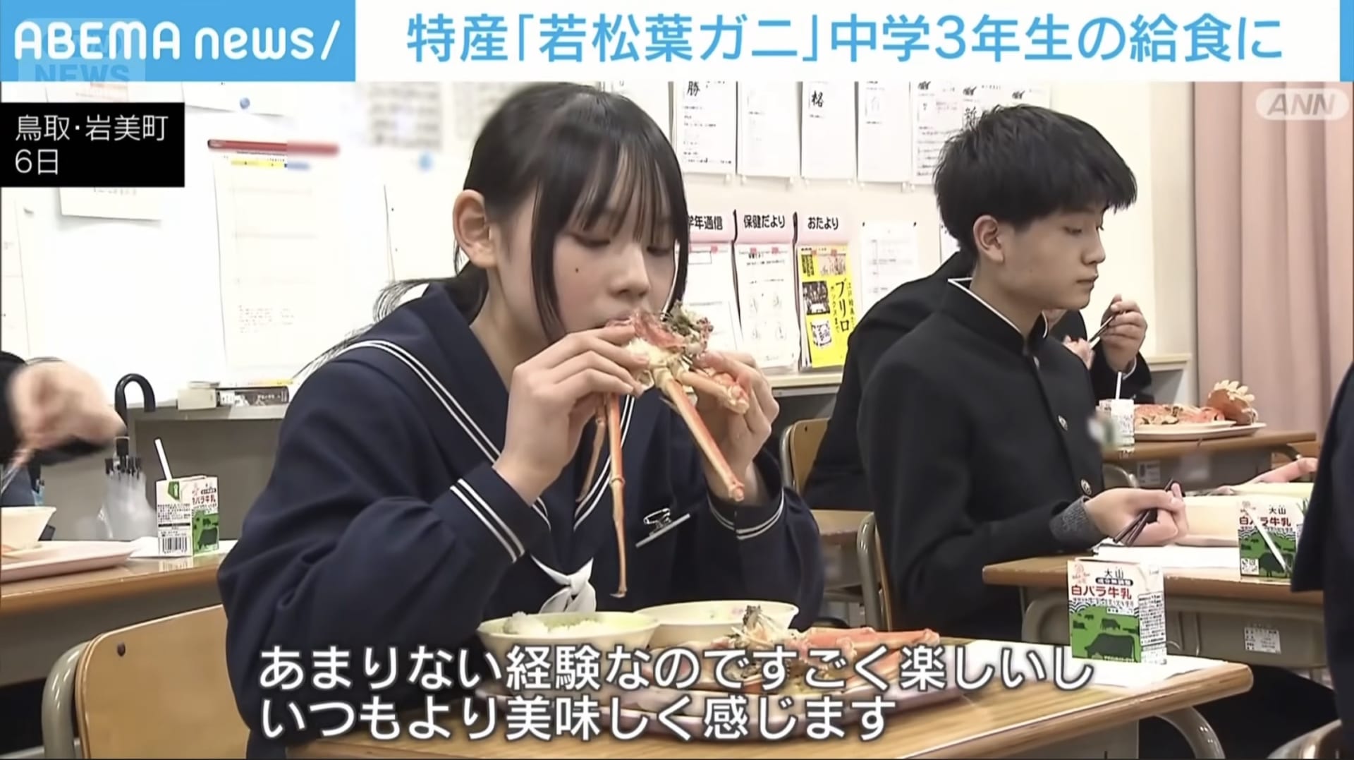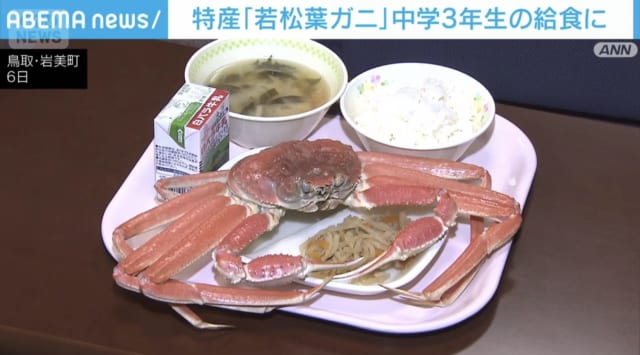 【画像】中学給食官「カニで白飯を食え」🦀🍚