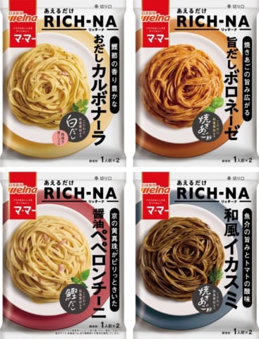 マ・マー あえるだけ パスタソース RICH-NA(リッチーナ) 4種類セット(おだしカルボナーラ、旨だしボロネーゼ、醤油ペペロンチーニ、和風イカスミ) 【セット買い】