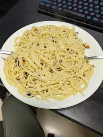 これだけの味でどの麵であろうとまずい/まずく感じるならそもそもペペロンチーノが好きじゃないからおいしくなる味や具材をがんがん入れればいいと思う