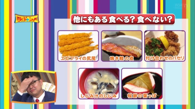 えびはカラッと揚がってたら食べる。鮭はパリッと焼けていれば食べる。他は気分で食べる。