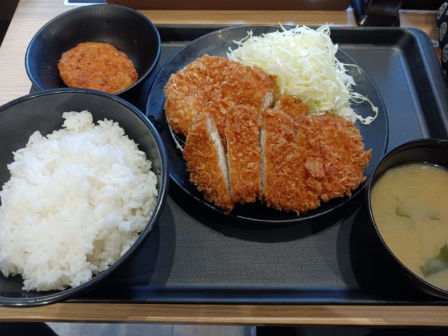 ワイ「ダブルとんかつ定食、ご飯おかわりコロッケ付で」松のや「730円です」