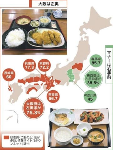ごはんや味噌汁は左手で持つんやし関西式が合理的よね