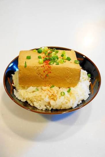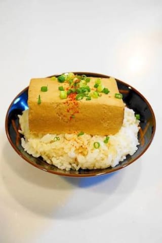 出汁で煮含めた豆腐をご飯に乗せて食べるのは