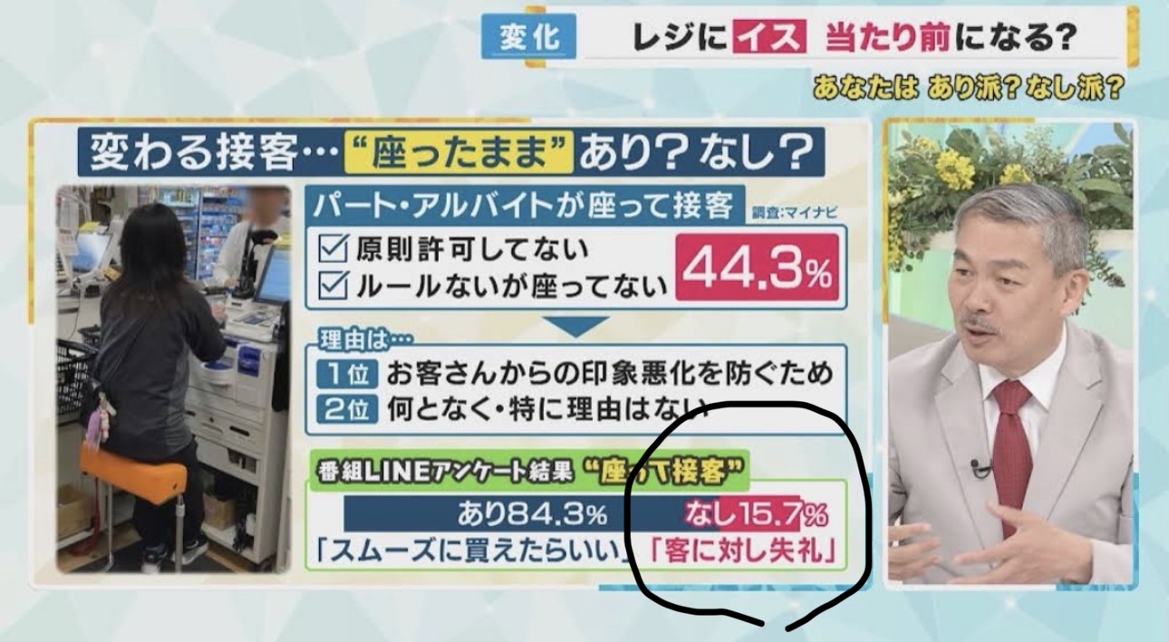 「座ったまま接客」15.7%が客に対し失礼だと思っていた…😱
