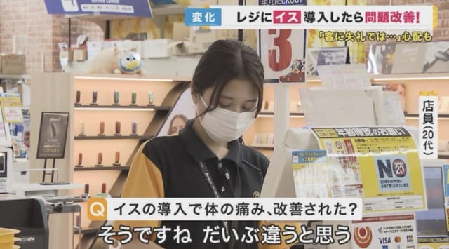 座ったままだとレジ打ちしにくいやろ