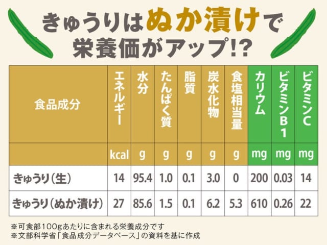 きゅうりはそのまま食うとビタミン破壊するから調味料かけまくれ