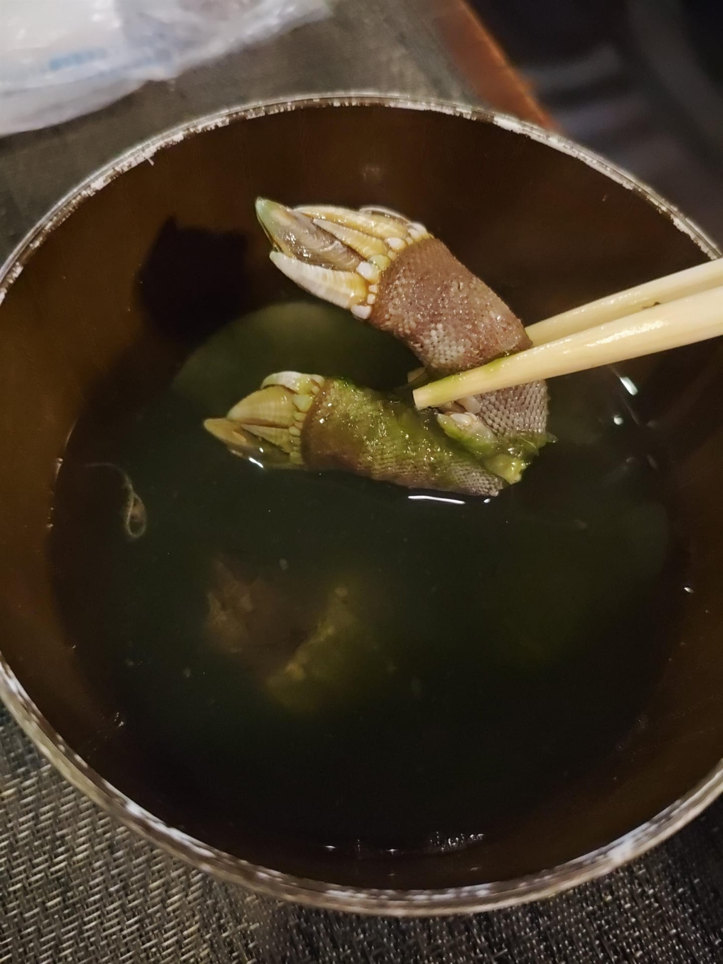 カメノテは濃厚なカニの味なんで、すまし汁より酒のつまみに食べたいな。