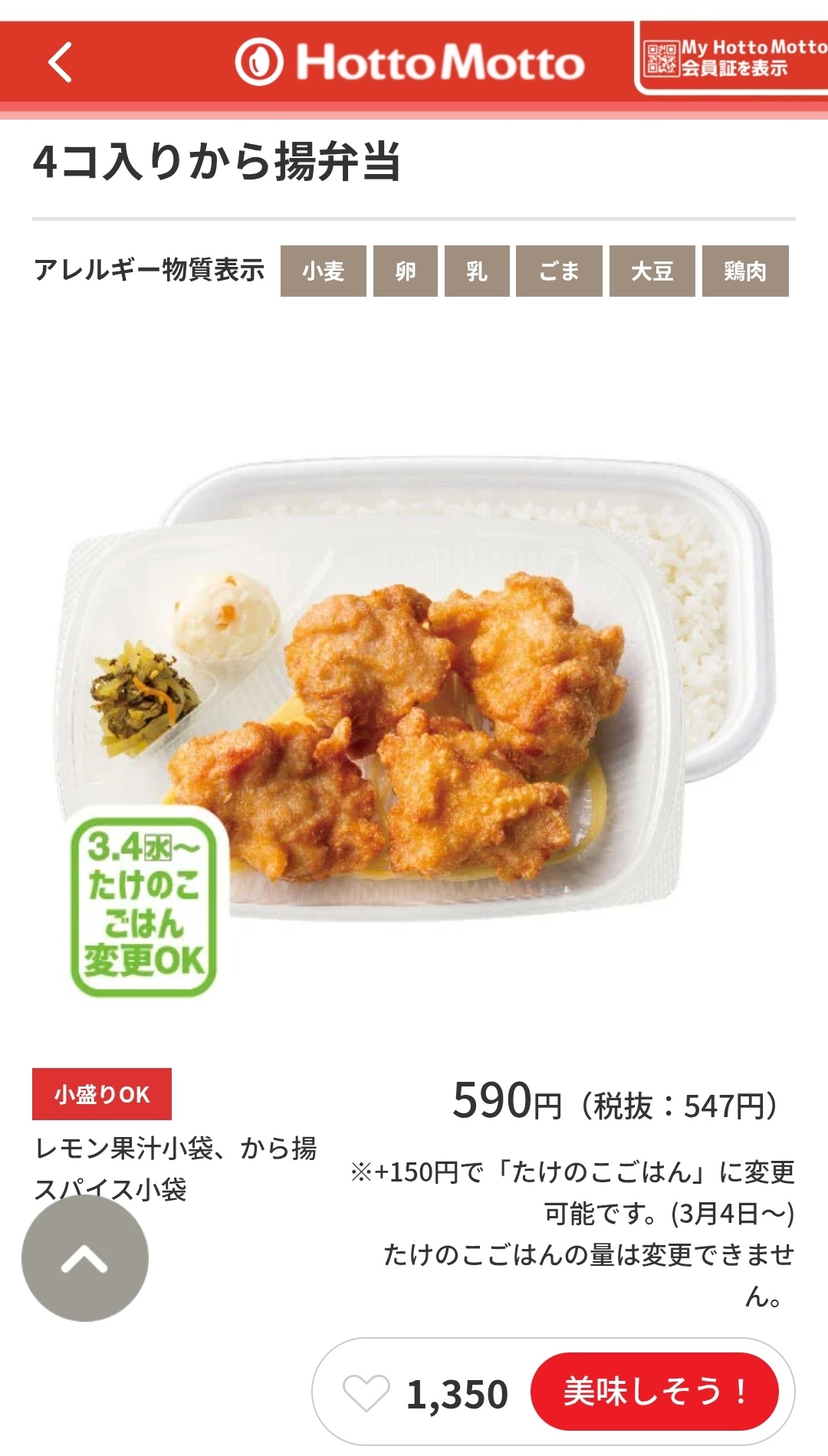 ほっかほっか亭の唐揚げはサイズ大きくなったからほっともっととは単純比較できないけどな