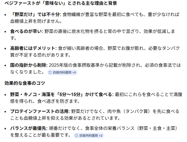 野菜を最初に食べろって30分くらいは経過しないと意味ないらしいから専門家は笑うらしいな