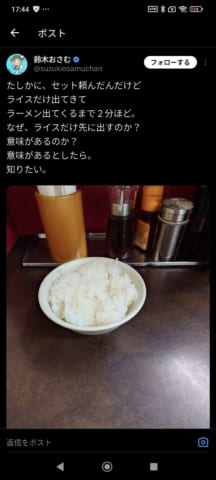 ラーメン屋のライス先出しはごく普通の対応なのだが