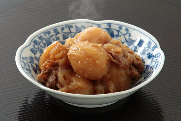 皮だけ向いて丸々一個を弱火でじっくりと煮込む