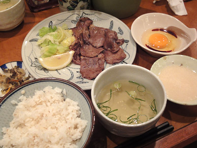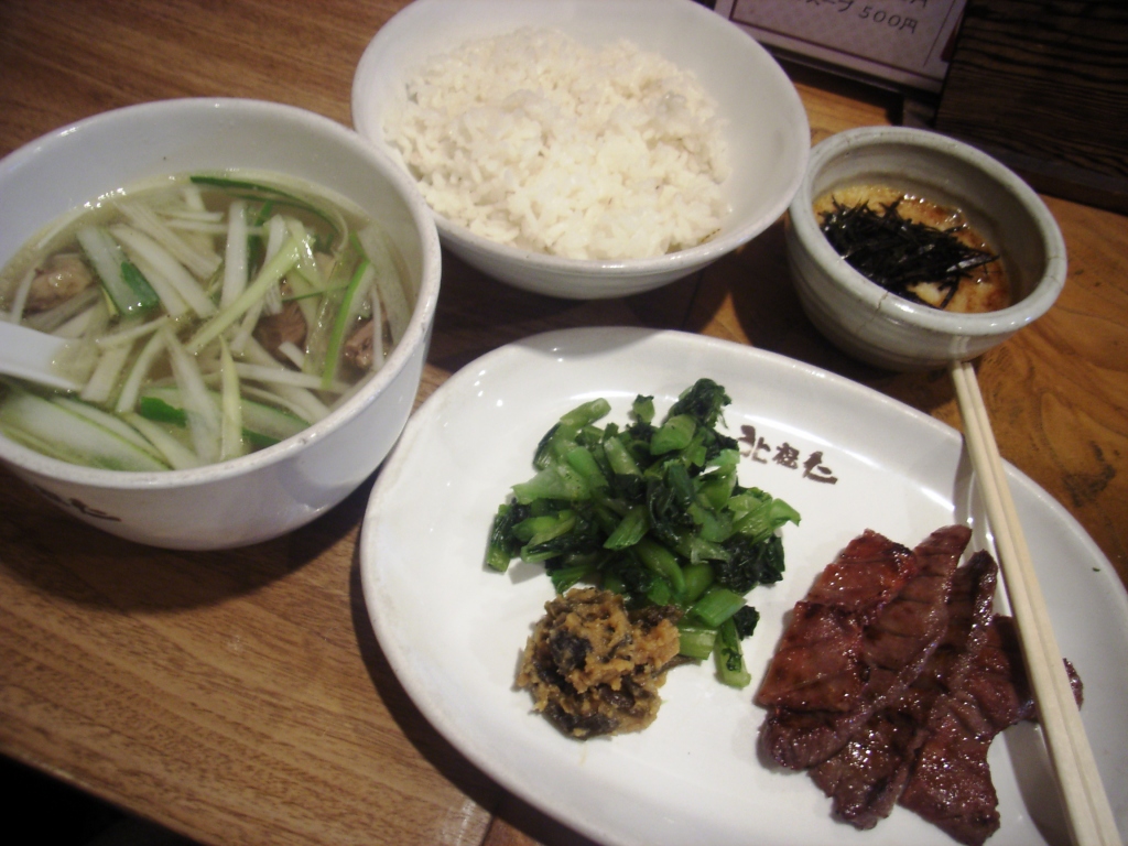 まず、タン塩でビール。ほどよい塩味とレモンの爽やかさが脂と溶けて最高のつまみだよ。