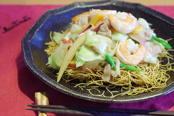 油であげてない細麺の、かた焼きソバっぽい皿うどんが とてもおいしそうだった