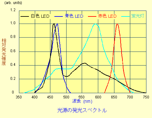 「一般家庭用の」蛍光灯は青色成分が少ないので非効率