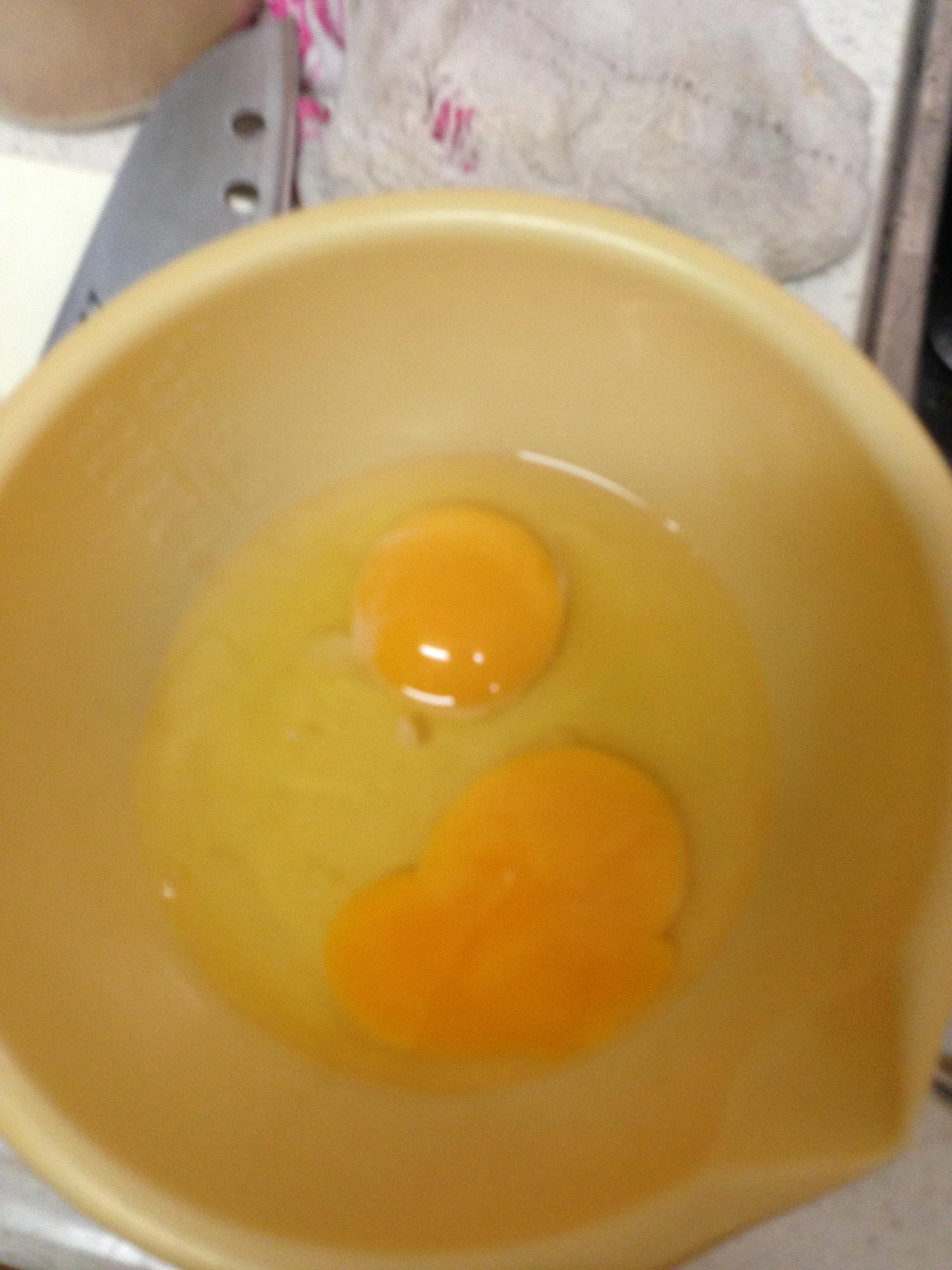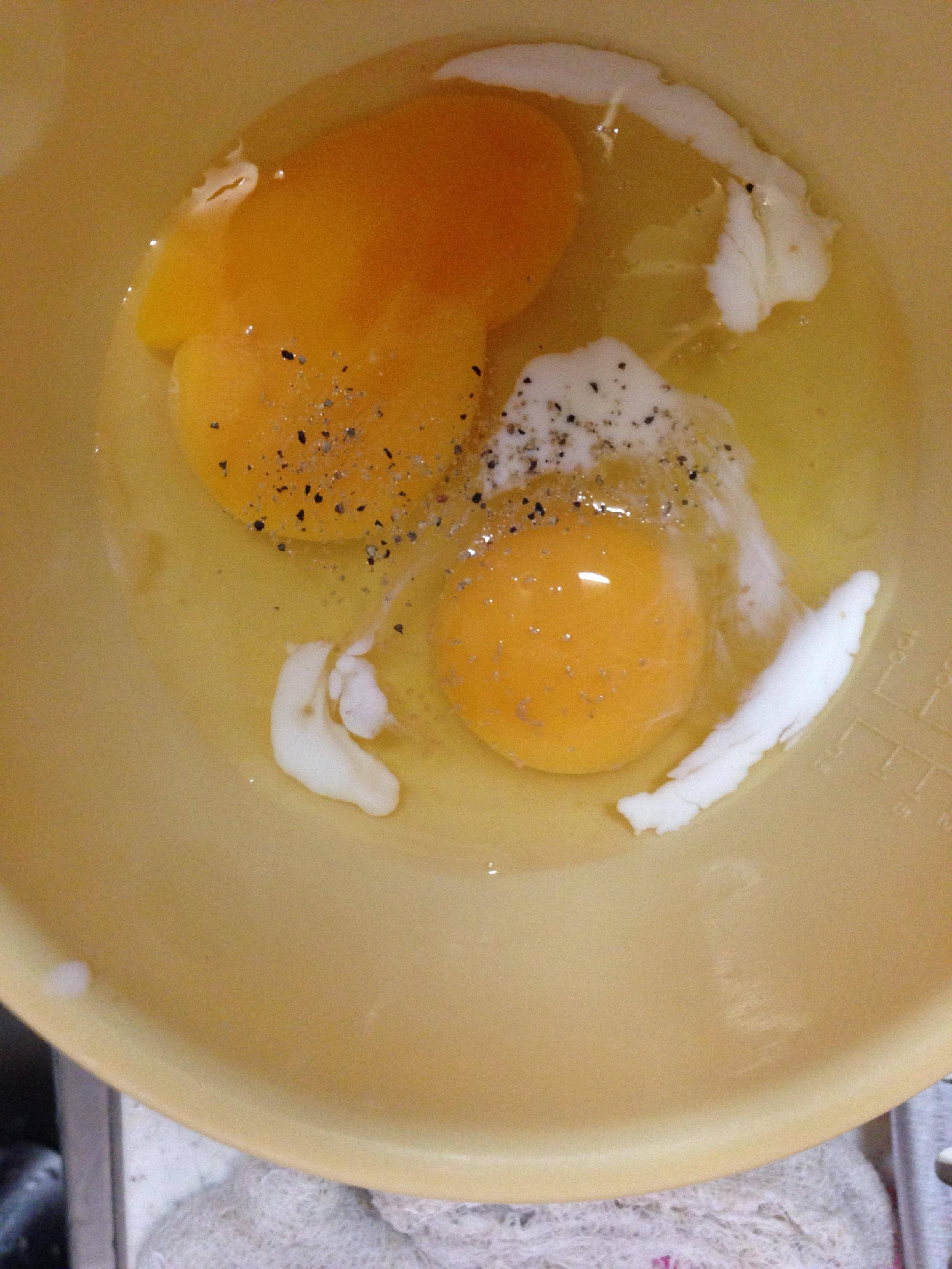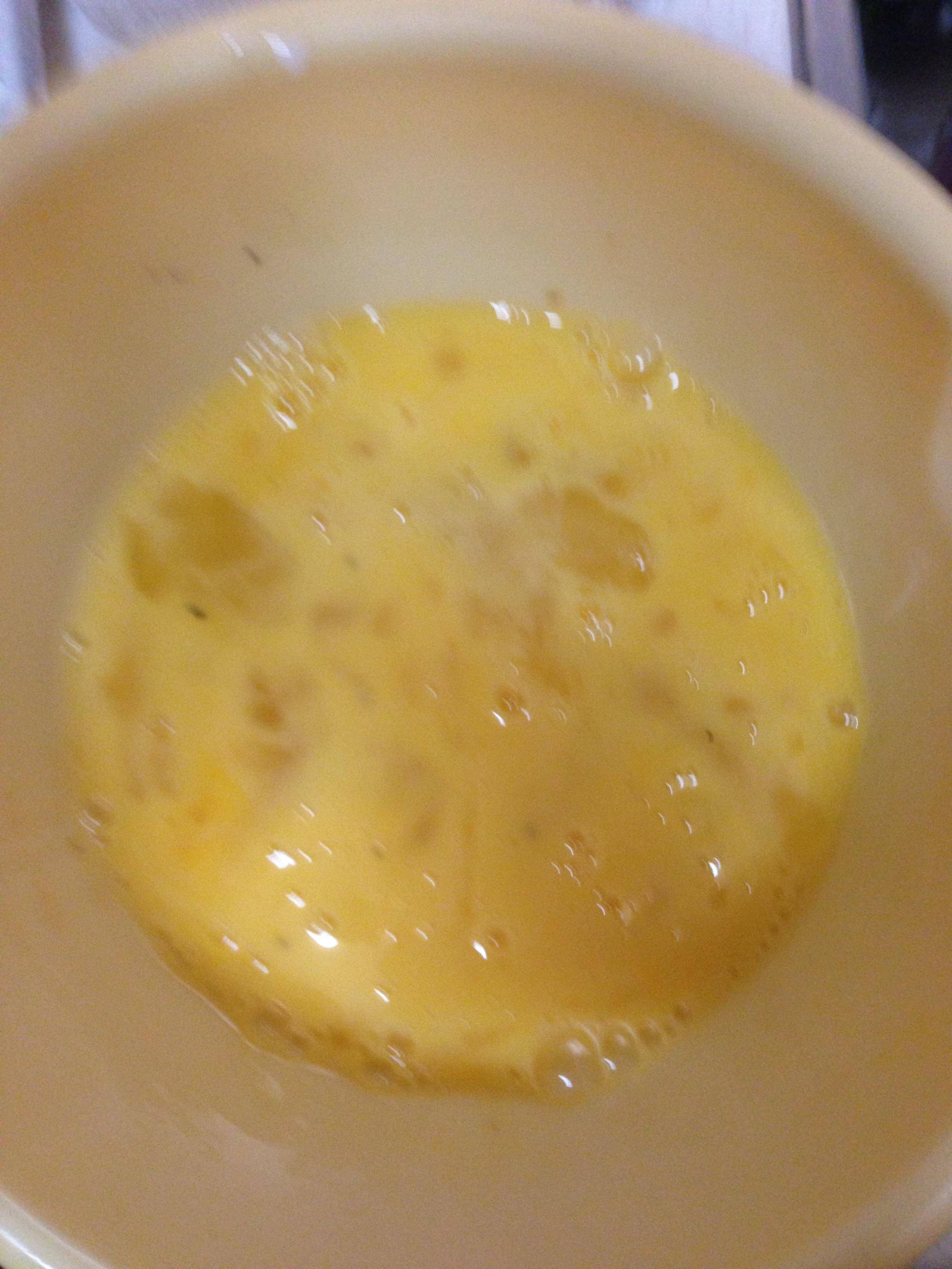 卵入れて…ほんだしと牛乳と塩胡椒を入れるよ!