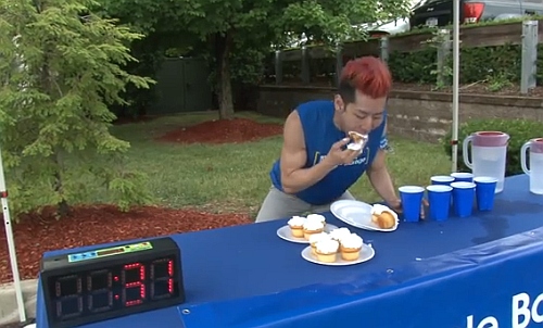 カップケーキ早食いの世界記録にチャレンジ中の小林さん