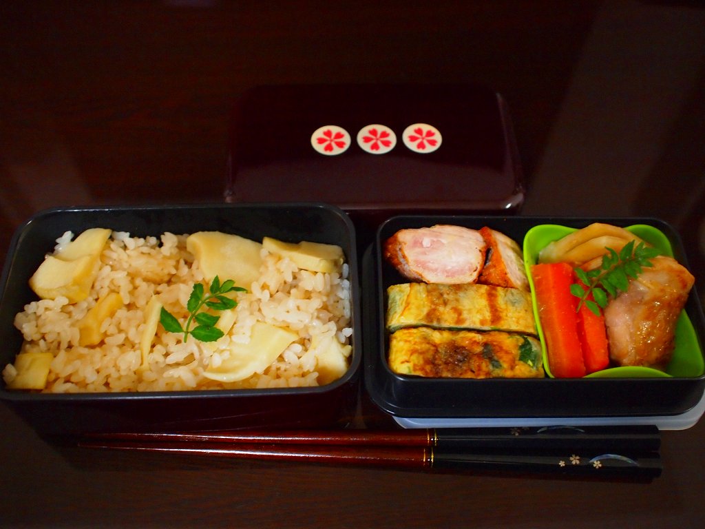 筍ご飯 鶏のから揚げ(冷凍食品利用)