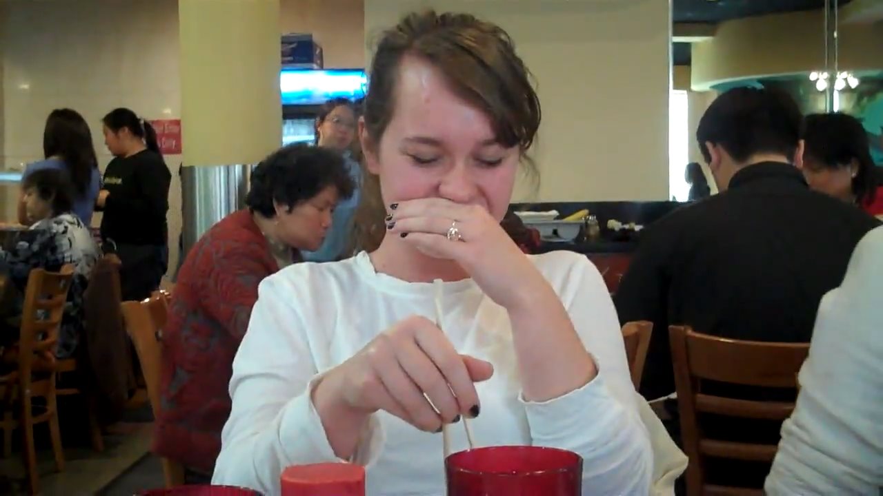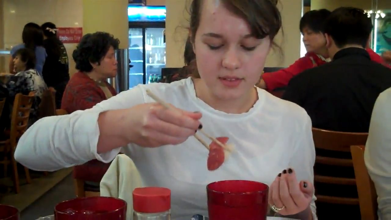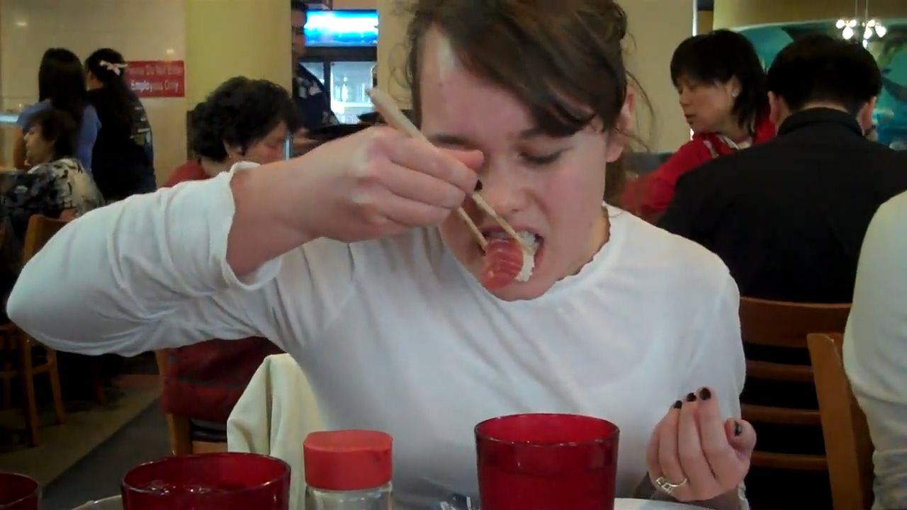 とりあえず彼女が食べてるのは寿司の形をした何かなのはわかった