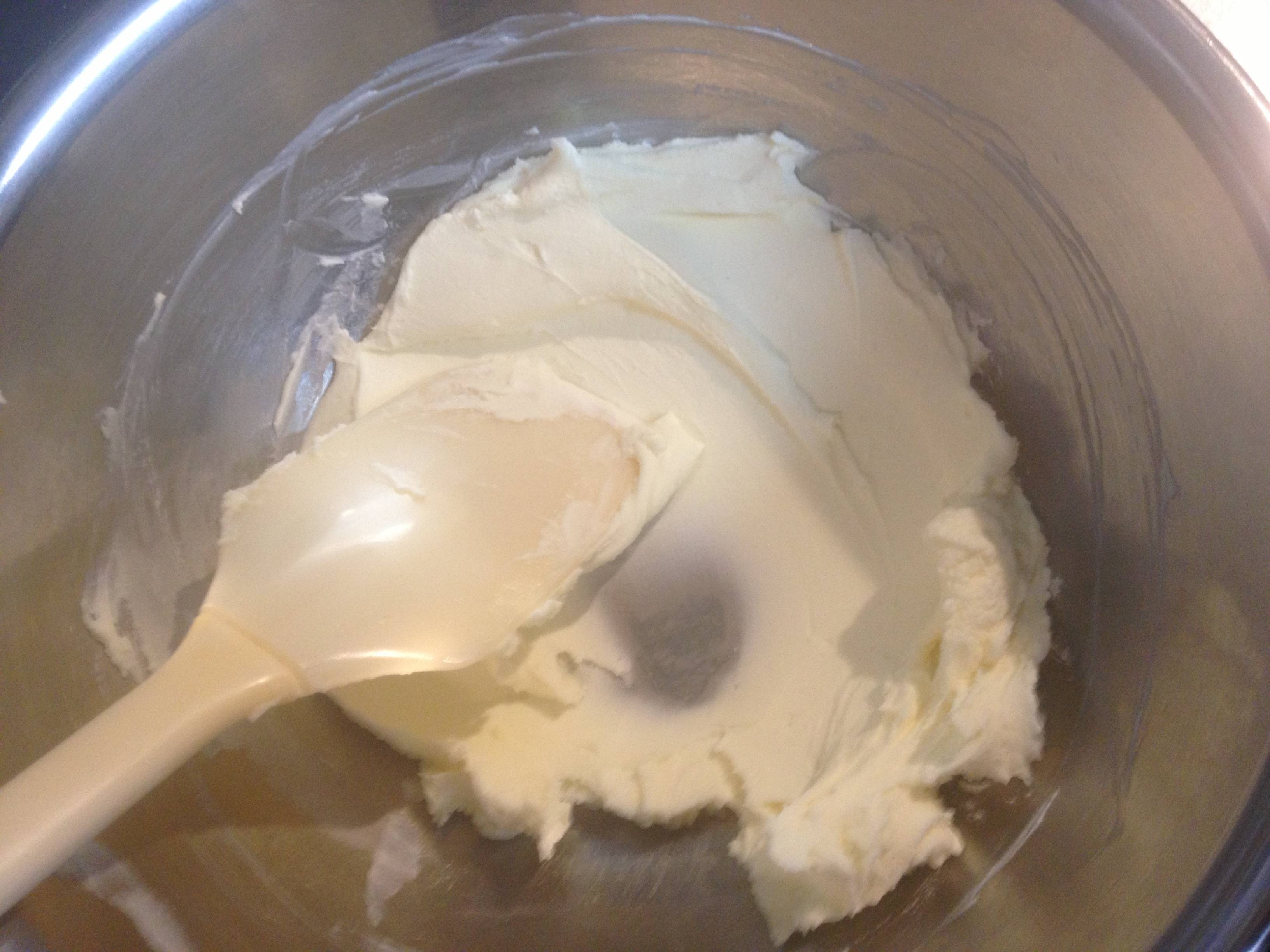 マスカルポーネをボウルにいれてゴムベラで伸ばす