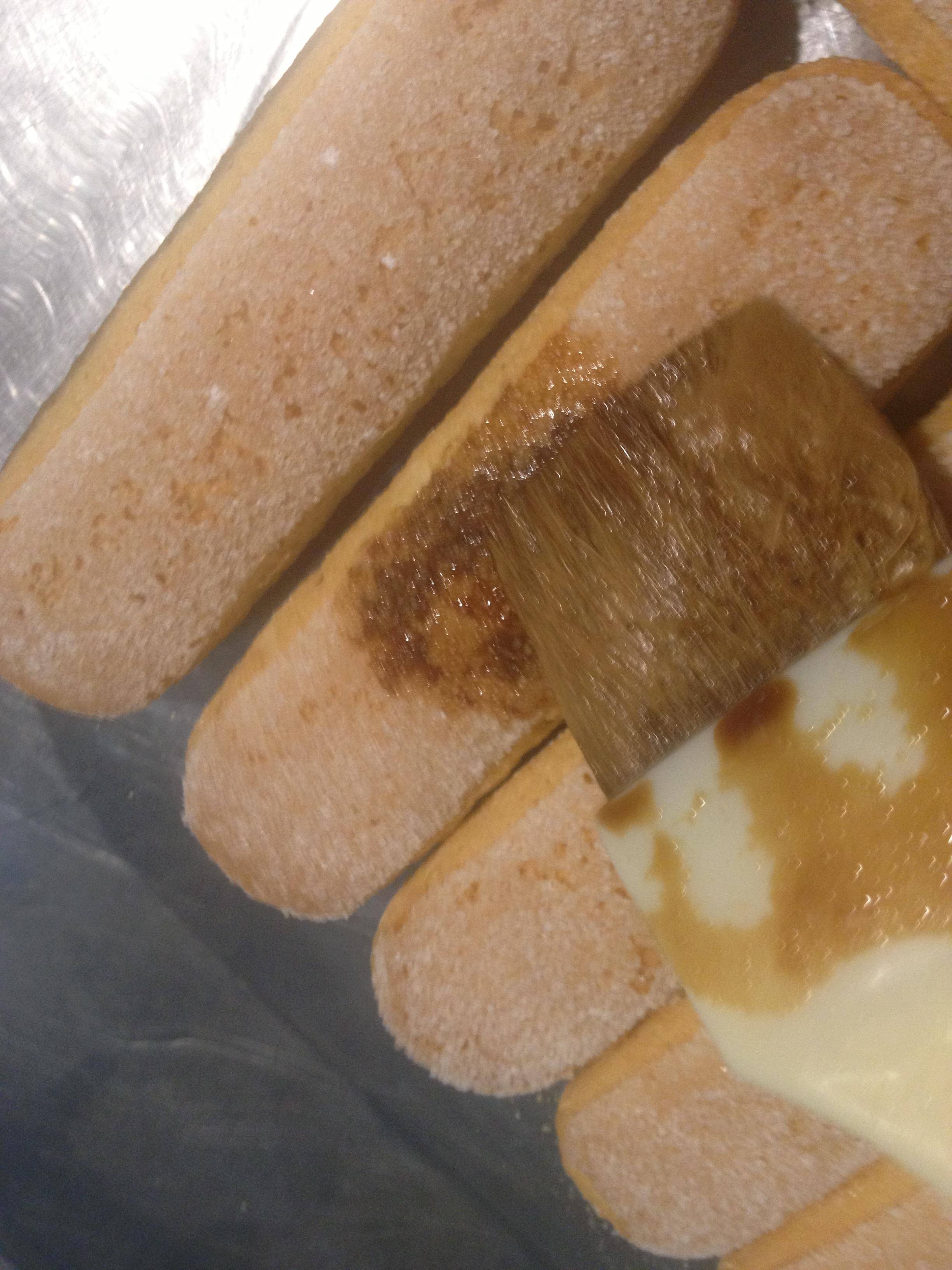 エスプレッソを刷毛で丁寧にたっぷりと染み込ませて行くお