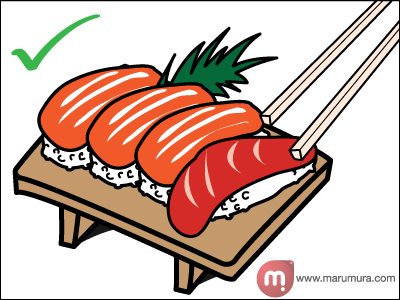 『日本人に恥じない寿司の食べ方のマナー』 タイでお寿司の食べ方のマナーが紹介されていました。 お箸か手でつかみます ネタに醤油をつけます 寿司本来の味が楽しめるようネタが舌に乗るように食べます セットで出てきたときは箸の先を使います まだ使っていないお箸だけ箸置きに置きます。醤油皿にお箸を置けば、おなかがいっぱいという合図です。 続きはソース http://thailog.net/2013/09/01/1700/