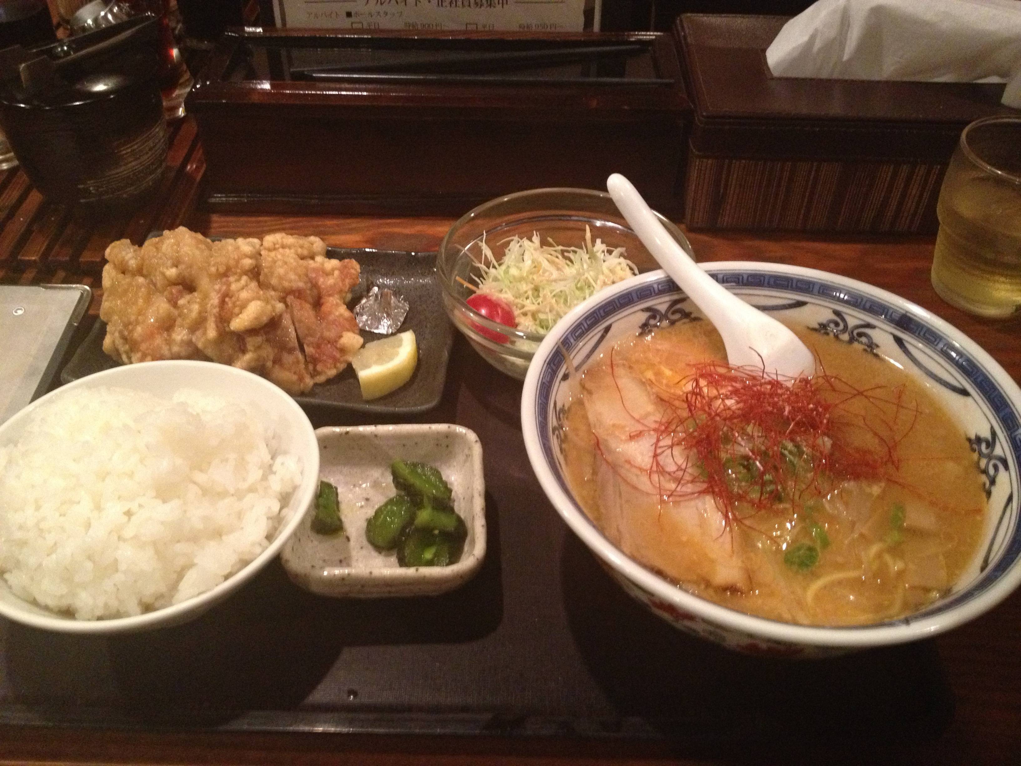 津駅周辺にあるラーメン一等兵 麦(ばく) 天一みたいなどろっどろのスープの闘魂ラーメンって言うのがオススメらしい。 写真は闘魂みそ こういう系の味噌ラーメンは他ではあんまり見ない気がするwww 結構重いからシメのラーメンに~とかには向いてないと思うんだ(´・ω・`) 唐揚げについてるタレや置いてある薬味にニンニクがふんだんに使われててパンチのほしい方にはおすすめ!