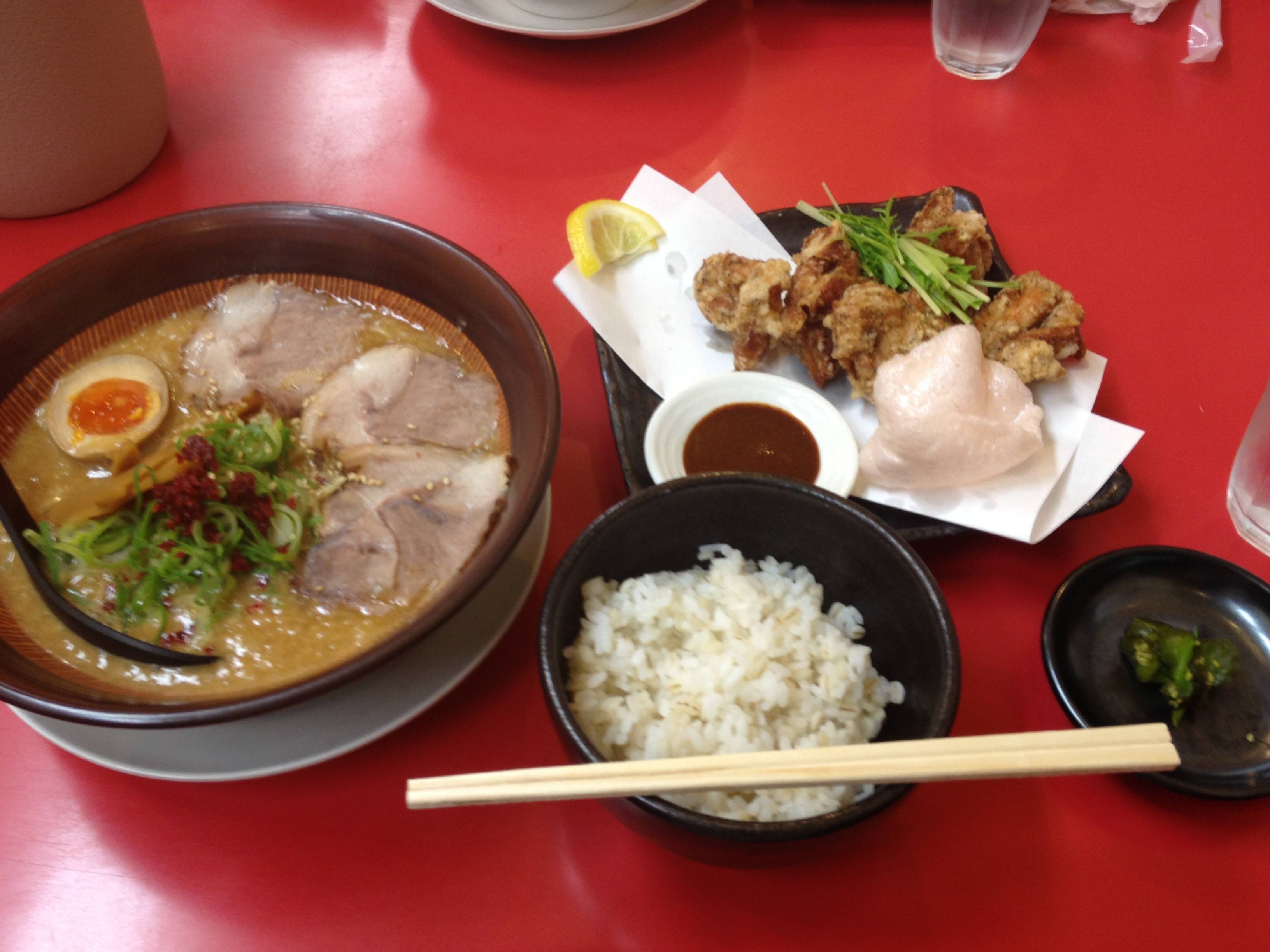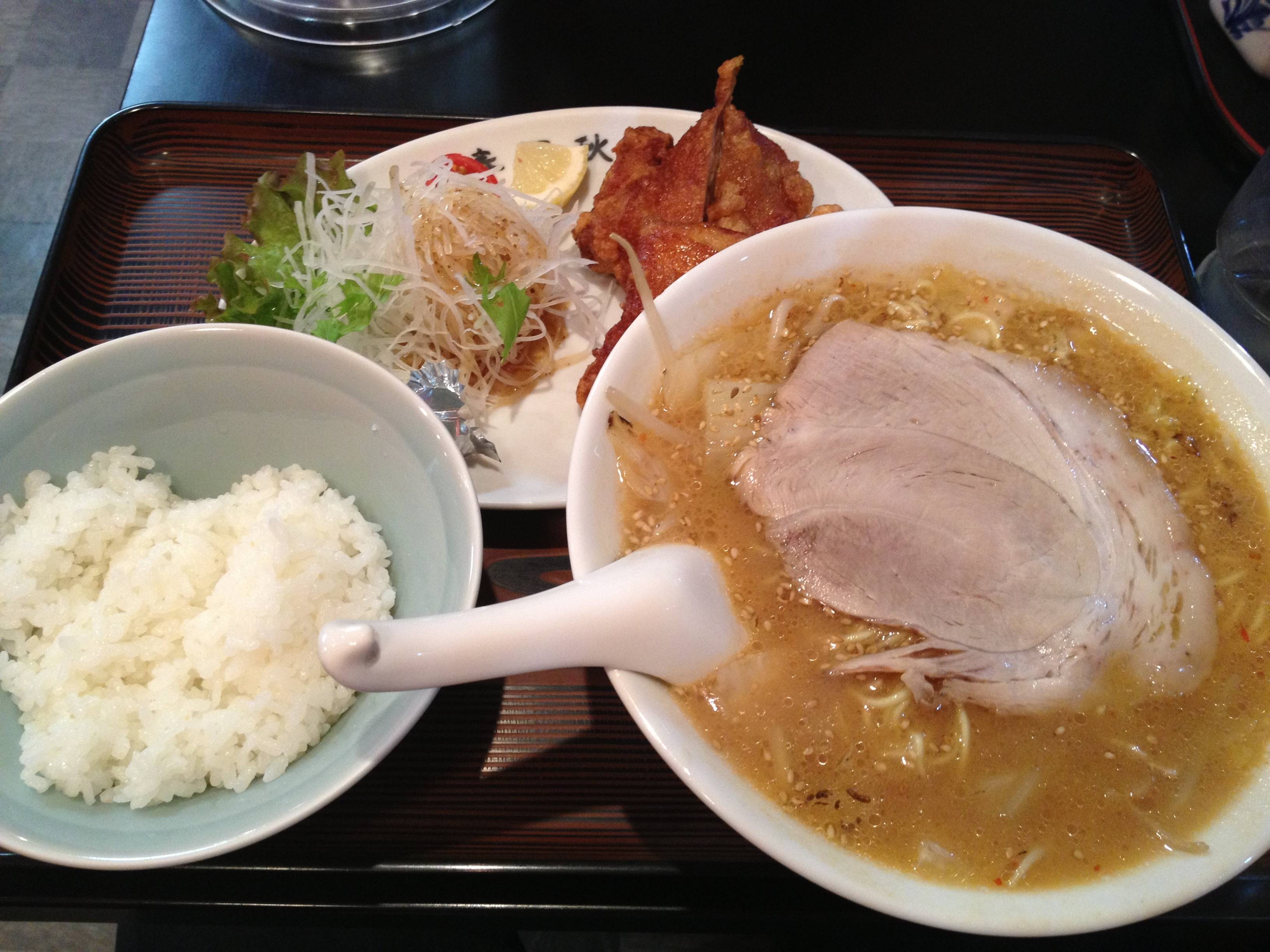 俺はこれ みそらぁめんに全チャーシュートッピングと 唐揚げ1個のセット c0088e59.jpg