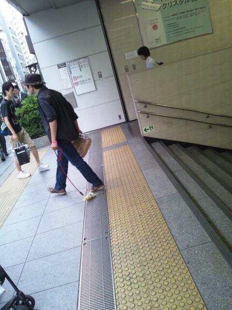 堂々としたもんだな。うちの犬は人混みだとビビっちゃってダメなんだ